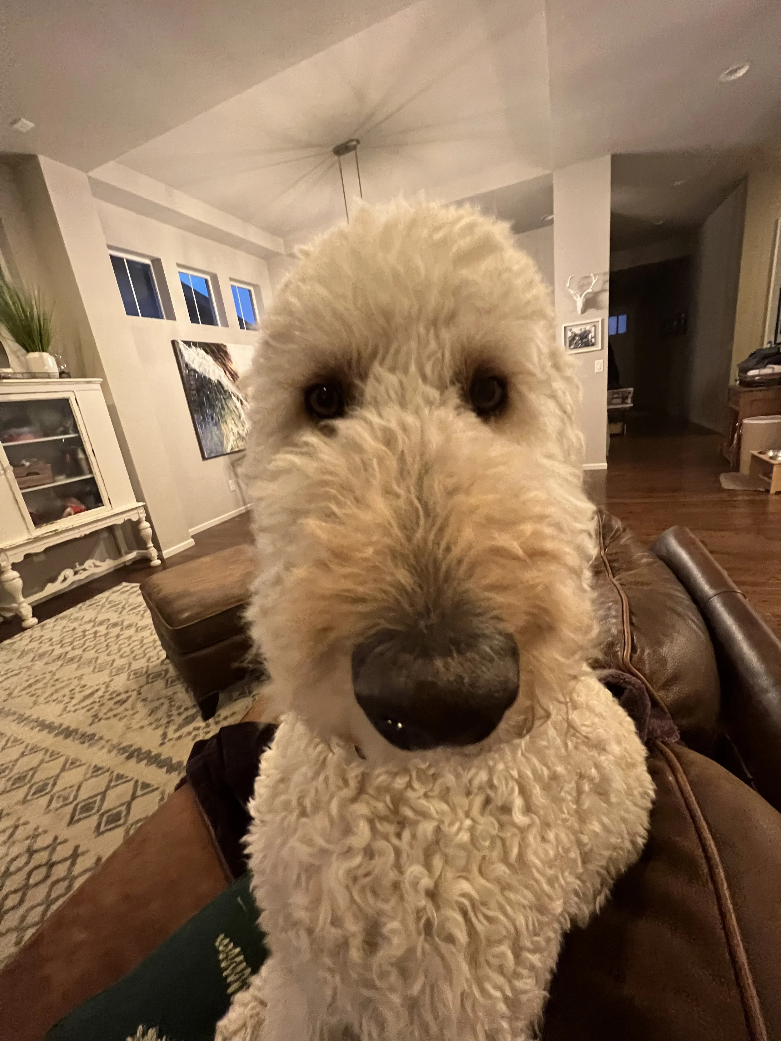 I have a golden doodle named Finnegan, who I’m not entirely convinced isn’t a human in a dog suit (look at those eyes)!
